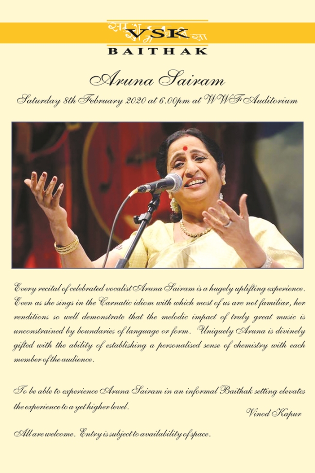 She will be accompanied on Sarangi by Bharat Bhushan Goswami; on