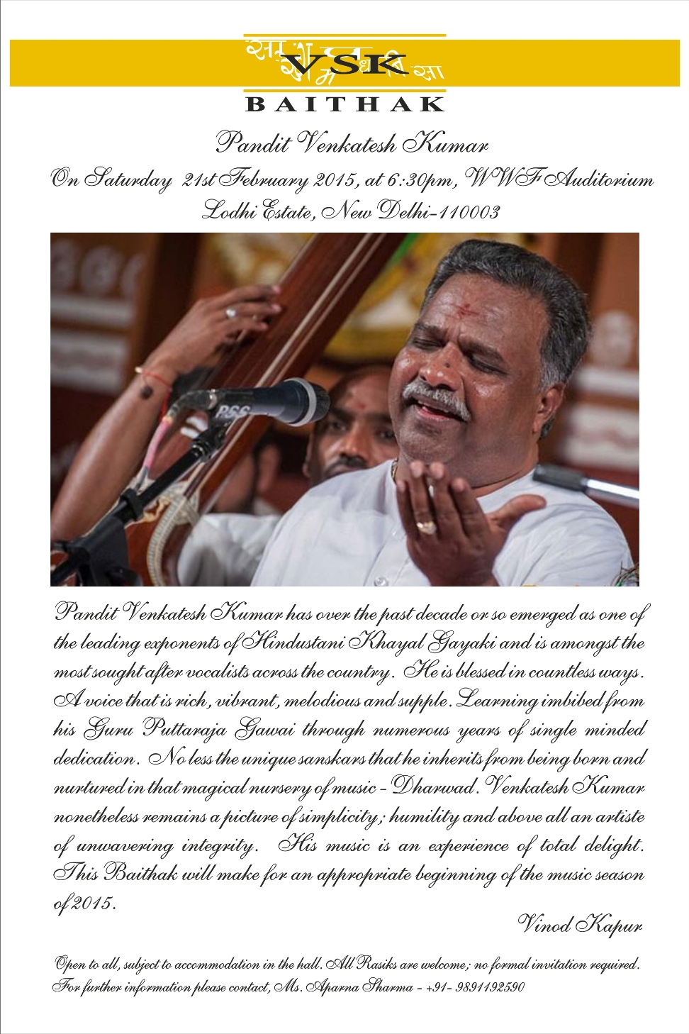 Gayaki Utsav 2012-2013 in Delhi this September, where, in a series